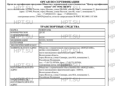 | Предприятие-изготовитель | «НОРДТАНК» |