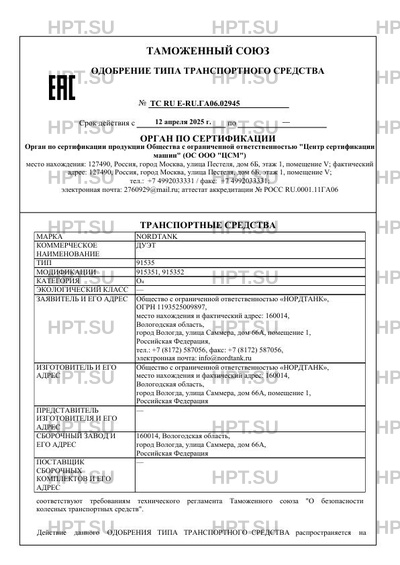| Марка ТС | NORDTANK |