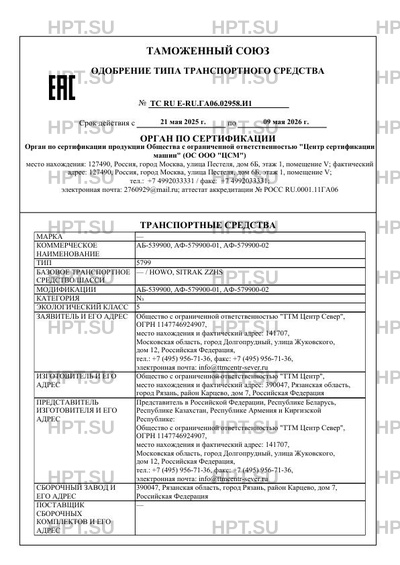 | Номер документа | ТС RU Е-RU.ГА06.02958.И1 |