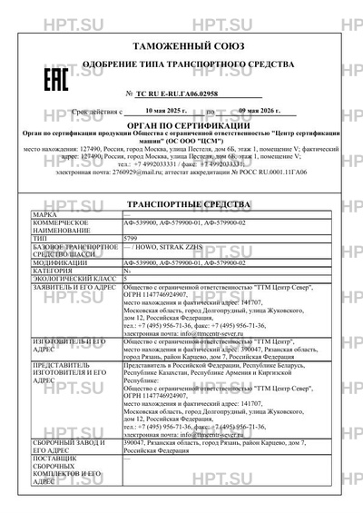 | Номер документа | ТС RU Е-RU.ГА06.02958 |