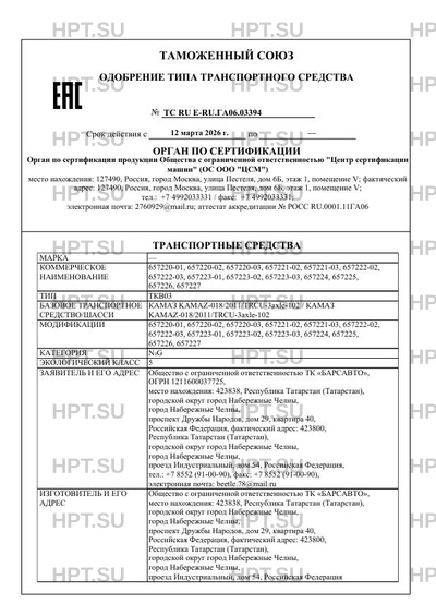 | Предприятие-изготовитель | ТК «БАРСАВТО» |