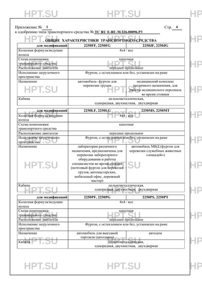 Оборудование ТС система регулирования давления воздуха в шинах (для мод. на базе 33081, 33088), устройство вызова экстренных оперативных служб с ручным включением и автоматическим срабатыванием при опрокидывании по заказу: лебедка, второй топливный бак (для мод. на базе 33081); желтые сигнальные фонари, фонари лунного света, багажники, лестницы, фонари наружного освещения, маркиза; специальное оборудование в зависимости от назначения автомобиля, не влияющее на выполнение требований ТР ТС 018/2011; спец. крепление оборудования, рундуки, стеллажи, генератор, фара - искатель, предпусковой подогреватель; продольные боковые откидные сиденья (скамьи) или продольные боковые откидные и съемные средние сиденья (скамьи), используемые только во время стоянки, тахограф коробка отбора мощности, магнитола, кондиционер; наружный воздухозаборник, раздаточная коробка с возможностью отбора мощности, медицинское оборудование (для мод. 2250JF, 2250JG)