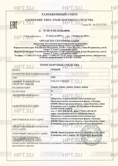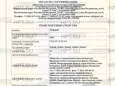 | Тип ТС | Транспортные средства типа 2250, изготовлены на базе транспортных средств и шас… |