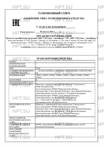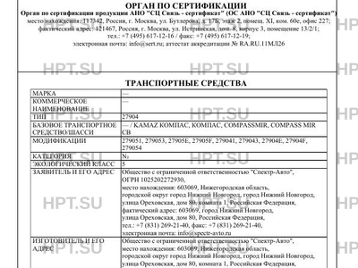 | Базовое ТС / Шасси | KAMAZ КОМПАС, КОМПАС, COMPASSMIR, COMPASS MIR CB |