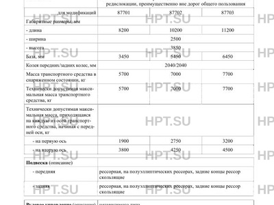 | Колесная база | Для модификаций 87701: 3450 мм. Для модификаций 87702: 5450 мм. Для модификаций 87703: 6450 мм. |