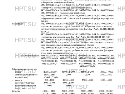 | Подвеска передняя | зависимая, пневматическая, с гидравлическими телескопическими амортизаторами или зависимая, рессорная балансирная, с гидравлическими телескопическими амортизаторами и со стабилизаторами поперечной устойчивости или без них, с первой, или с первой и второй или с первой и четвертой или с четвертой выдвижными (подъемными) осями или без них консоль с гидроцилиндром подъема контейнера и задними дополнительными опорами, поворотный задний контейнерный замок 945 |