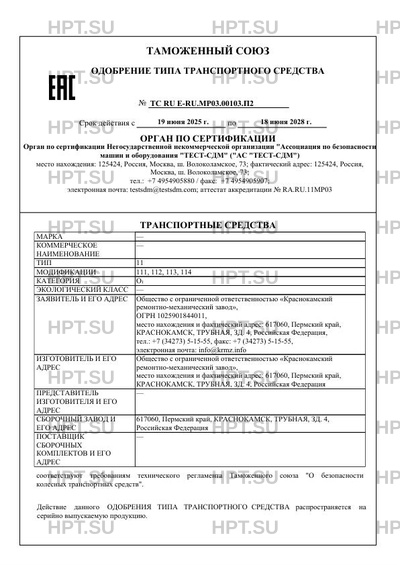 | Номер документа | ТС RU Е-RU.МР03.00103.П2 |