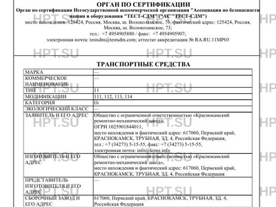 | Орган по сертификации | Орган по сертификации Негосударственная некоммерческая организация "Ассоциация по безопасности машин и оборудования "ТЕСТ-СДМ" ("АС "ТЕСТ-СДМ") |
