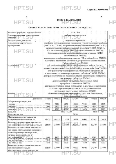 | Дополнительная информация | Коммерческое наименование автомобиль-сортиментовоз с ГМ используется для транспортных средств типа 734201; автомобиль-сортиментовоз — для 734202; автомобиль-металловоз с ГМ — для 734203, 734204; автомобиль бортовой с КМУ — для 734205; автомобиль специальный для погрузки леса — для 734206; автомобиль-тягач лесовозный с ГМ — для 734208. Для изготовления транспортных средств применяются модификации шасси 43118-42, 43118-46, 43118-L4. |