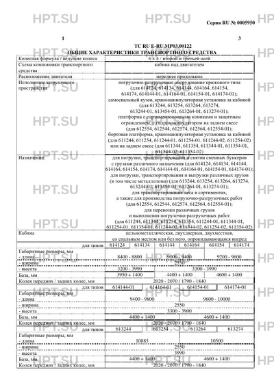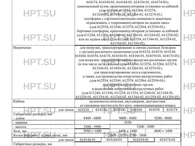 Исполнение загрузочного пространства погрузочно-разгрузочное оборудование крюкового типа (для 614124, 614134, 614144, 614164, 614154, 614174, 614144-01, 614164-01, 614154-01, 614174-01); самосвальный кузов, краноманипуляторная установка за кабиной (для 613244, 613254, 613264, 613274, 613244-01, 613454-01, 613264-01, 613274-01); платформа с сортиментовозными кониками и защитным ограждением, с гидроманипулятором на заднем свесе (для 612554, 612544, 612574, 612564, 612554-01); бортовая платформа, краноманипуляторная установка за кабиной (для 611244, 611254, 611244-01, 611254-01, 611244-02, 611254-02) или на заднем свесе (для 611344, 611354, 611344-01, 611354-01, 611344-02, 611354-02)