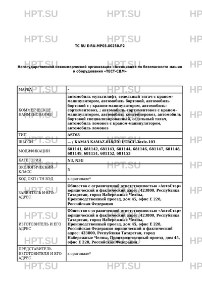 | Номер документа | ТС RU Е-RU.МР03.00250.Р2 |