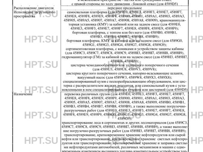 | Оборудование ТС | '- два проблесковых маячка оранжевого цвета, бесшовные кабелепроводы защиты электропроводки, заземляющая цепочка и металлический штырь для защиты от статических и атмосферных электрических разрядов, искрогасительная сетка и теплозащитный экран на выпускной трубе глушителя, огнетушители, аппаратура спутниковой навигации (для 4589U3, 4589U8, 4589W3, 4589W8), - по заказу: насос, пистолет, счетчик жидкости, рукава (для 4589U3, 4589U8), - по заказу (оборудование шасси или базового транспортного средства): кондиционер, устройство вызова экстренных оперативных служб, - устройства увязки |