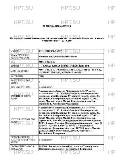 | Номер документа | ТС RU Е-RU.МР03.00372.Р4 |