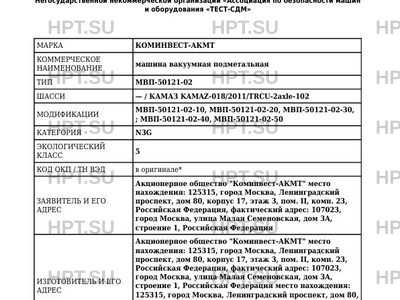 | Орган по сертификации | Орган по сертификации Негосударственная некоммерческая организация "Ассоциация по безопасности машин и оборудования "ТЕСТ-СДМ" ("АС "ТЕСТ-СДМ") |