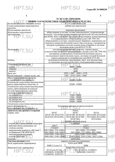 | Дополнительная информация | Для изготовления транспортных средств применяются шасси с коммерческими наименованиями FM, FM-TRUCK, FM11/13, FMX 8х4. Транспортные средства с двигателями D11C, D13A относятся к экологическому классу 4, с двигателями D11C, D13C — 5. При обозначении двигателя на информационных наклейках, расположенных на двигателе, в конце наименования могут присутствовать один или два буквенных символа, которые указывают на вариант программного обеспечения двигателя и не относятся к обозначению его модели. Для транспортных средств, которые могут быть отнесены одновременно к двум экологическим классам, экологический класс определяется по коду производителя, который указывается на идентификационной табличке изготовителя, размещенной на двигателе. В случае фактического превышения транспортным средством ограничений, установленных приложением № 5 к техническому регламенту Таможенного союза «О безопасности колесных транспортных средств», для его передвижения по территории Евразийского экономического союза необходимо оформление специального разрешения. Данное ОДОБРЕНИЕ ТИПА ТРАНСПОРТНОГО СРЕДСТВА является распространением ОДОБРЕНИЯ ТИПА ТРАНСПОРТНОГО СРЕДСТВА № E-RU.MP03.А.00202, выданного до вступления в силу технического регламента Таможенного союза «О безопасности колесных транспортных средств» на малую партию транспортных средств. |