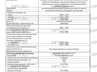 Исполнение загрузочного пространства подъемное оборудование в составе: рамы с гидравлическими опорами; опорно-поворотного устройства; секционной стрелы с рабочей платформой; трансмиссии привода подъемного оборудования; пультов управления; электрооборудования и приборов безопасности