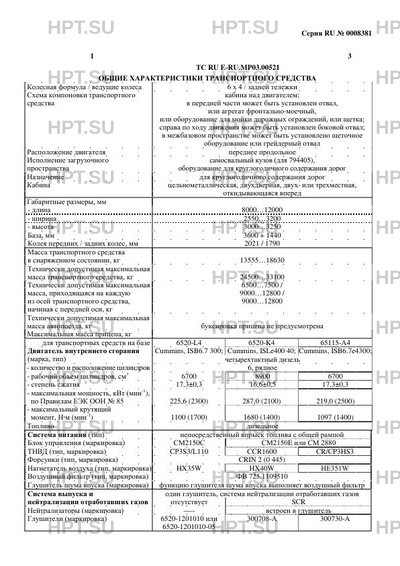 | Базовое ТС / Шасси | КАМАЗ 6520 / КАМАЗ 6520 |