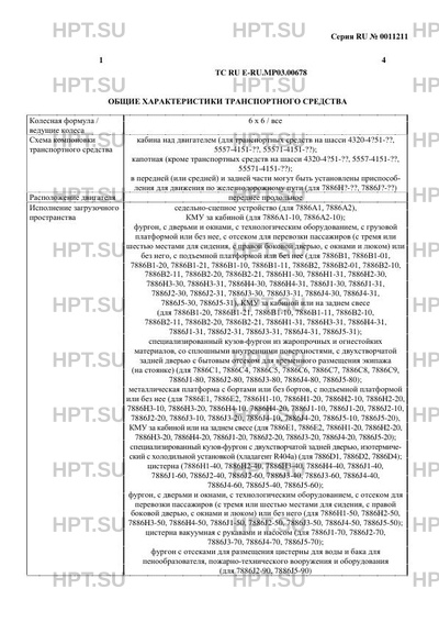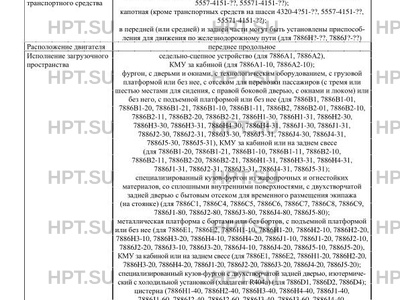 | Схема компоновки ТС | кабина над двигателем (для транспортных средств на шасси 4320-4?51-??, 5557-4151-??, 55571-4151-??); капотная (кроме транспортных средств на шасси 4320-4?51-??, 5557-4151-??, 55571-4151-??); в передней (или средней) и задней части могут быть установлены приспособления для движения по железнодорожному пути (для 7886H?-??, 7886J?-??) |
