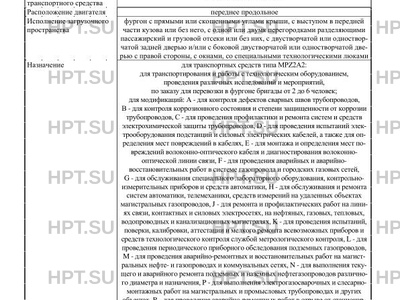 | Назначение | для транспортных средств типа MPZ2A2: для транспортирования и работы с технологическим оборудованием, проведения различных исследований и мероприятий, по заказу для перевозки в фургоне бригады от 2 до 6 человек для транспортных средств типа MPZ9A2: для транспортирования и работы с технологическим оборудованием, проведения различных исследований и мероприятий, по заказу для перевозки в фургоне бригады от 2 до 6 человек |