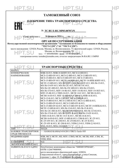 Оборудование ТС устройство ограничения максимальной скорости (функцию устройства ограничения максимальной скорости выполняет электронный блок управления двигателем) (оборудование шасси); дневные ходовые огни (оборудование шасси); устройство вызова экстренных оперативных служб с функцией автоматического срабатывания при опрокидывании (оборудование шасси); один, два или три проблесковых маячка автожелтого цвета (для модификаций МЗВ, МСЗ, МСЗУ, МЗ, МЗУ, СЗМЗ, МСЗС, МСЗН, МЗГ, СЗМ, УПМ); система пожаротушения моторного отсека, защита топливных баков и аккумуляторных батарей, защита груза от загорания шин (теплозащитные экраны из стали), заземлительная цепочка и металлический штырь для защиты от статических и атмосферных электрических зарядов, бесшовные кабелепроводы защиты электропроводки (для модификаций МЗВ, МСЗ, МСЗУ, МЗ, МЗУ, СЗМЗ, МСЗС, МСЗН, МЗГ, СЗМ, УПМ) по заказу: кондиционер (хладагент R134a) (оборудование шасси); предпусковой подогреватель двигателя (оборудование шасси) передние противотуманные фары (оборудование шасси); коробка отбора мощности с оборудованием для гидропривода (оборудование