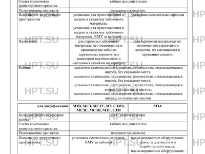 Исполнение загрузочного пространства установка для приготовления и подачи в скважину забоечного материала; установка для приготовления и подачи в скважину забоечного материала, КМУ за кабиной установка смесительно-зарядная установка смесительно-зарядная, КМУ за кабиной маслозаправочное оборудование, емкости для чистого и отработанного масла; маслозаправочное оборудование, емкости для чистого и отработанного масла, КМУ за кабиной установка для изготовления эмульсионных патронированных взрывчатых веществ; установка для изготовления эмульсионных патронированных взрывчатых веществ, КМУ за кабиной