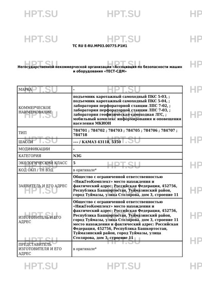 | Номер документа | ТС RU Е-RU.МР03.00775.Р1И1 |