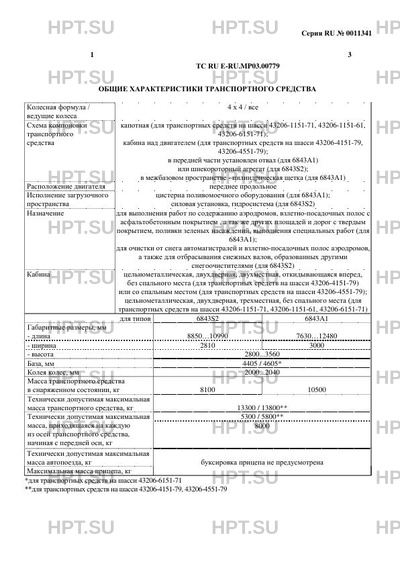 Схема компоновки ТС капотная (для транспортных средств на шасси 43206-1151-71, 43206-1151-61, 43206-6151-71); кабина над двигателем (для транспортных средств на шасси 43206-4151-79, 43206-4551-79); в передней части установлен отвал (для 6843А1) или шнекороторный агрегат (для 6843S2); в межбазовом пространстве - цилиндрическая щетка (для 6843А1)
