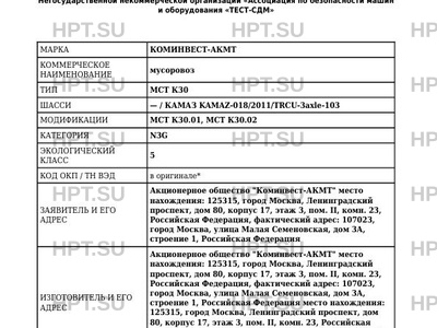| Марка ТС | КОМИНВЕСТ-АКМТ |