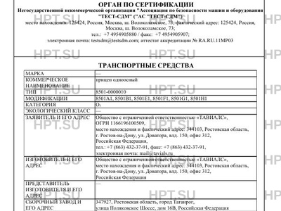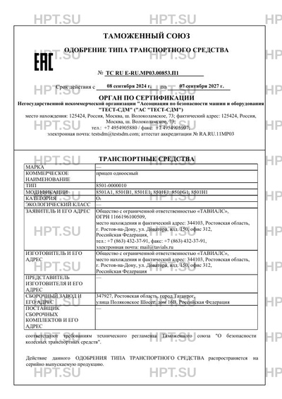 | Номер документа | ТС RU Е-RU.МР03.00853.П1 |