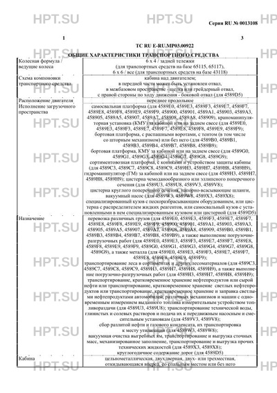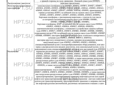 | Дополнительная информация | Коммерческое наименование автомобиль-самосвал специальный используется для транспортных средств типов 458900, 458901, 4589A1, 458903, 4589A3, 458905, 4589A5, 458907, 4589A7, 458908, 4589A8, 458909; автомобиль грузовой специальный — для 4589B0, 4589B1, 4589B3, 4589B4, 4589B7, 4589B8, 4589B9; автомобиль-самосвал специальный с КМУ — для 4589Е0, 4589Е3, 4589F3, 4589Е7, 4589F7, 4589Е8, 4589F8, 4589Е9, 4589F9; автомобиль грузовой специальный с КМУ — для 4589G0, 4589G1, 4589G3, 4589G4, 4589G7, 4589G8, 4589G9; автомобиль-сортиментовоз — для 4589C3, 4589C7, 4589C8, 4589C9; автомобиль-сортиментовоз с ГМ — для 4589H3, 4589H7, 4589H8, 4589H9; автоцистерна АЦ или автотопливозаправщик АТЗ или автоцистерна нефтепромысловая АЦН — для 4589U3, 4589U8; автоцистерна для технической воды АЦВ — для 4589V3, 4589V8; агрегат сбора газового конденсата АКН/АКНС — для 4589W3, 4589W8; машина вакуумная — для 4589X3, 4589X8; коммунальная дорожная машина — для 4589D5. Для изготовления транспортных средств типов 458903, 4589A3, 4589B3, 4589C3, 4589Е3, 4589F3, 4589G3, 4589H3, 4589U3, 4589V3, 4589W3, 4589X3, 458907, 4589A7, 4589B7, 4589C7, 4589Е7, 4589F7, 4589G7, 4589H7, 458908, 4589A8, 4589B8, 4589C8, 4589Е8, 4589F8, 4589G8, 4589H8, 4589U8, 4589V8, 4589W8, 4589X8, 458909, 4589B9, 4589C9, 4589Е9, 4589F9, 4589G9, 4589H9 применяются модификации шасси 43118-A5, 43118-50, 43118-37, 43118-RR, 43118-RS; для 458900, 4589B0, 4589Е0, 4589G0, 458901, 4589A1, 4589B1, 4589G1, 458905, 4589A5, 4589D5 — 65115-А5, 65115-50, 65115-RR, 65115-RS, 65115-37; для 4589B4, 4589G4 — 65117-А5, 65117-50, 65117-RR, 65117-RS, 65117-37. Для изготовления транспортных средств типа 4589D5 применяются модификации базовых транспортных средств 65115-А5, 65115-50, 65115-37, 65115-RR, 65115-RS. В случае фактического превышения транспортным средством ограничений, установленных приложением № 5 к техническому регламенту Таможенного союза «О безопасности колесных транспортных средств», для его передвижения по территории Евразийского экономического союза необходимо оформление специального разрешения. Транспортные средства типов 4589U3, 4589U8, 4589W3, 4589W8 относятся к транспортным средствам FL в соответствии с пунктом 9.1.1.2 Европейского соглашения о международной дорожной перевозке опасных грузов (ДОПОГ). Показатели масс не могут превышать максимальных для конкретного базового транспортного средства или шасси, указанных в одобрении типа на базовое транспортное средство или шасси, на табличке изготовителя базового транспортного средства или шасси и в его сопроводительной документации. |
