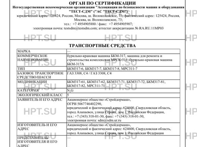 | Орган по сертификации | Орган по сертификации Негосударственная некоммерческая организация "Ассоциация по безопасности машин и оборудования "ТЕСТ-СДМ" ("АС "ТЕСТ-СДМ") |