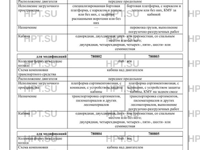 | Оборудование ТС | устройство увязки, устройство освещения рабочей зоны, тент, один или два проблесковых маячка автожелтого цвета (для 780804, 780811, 780819, 780822), бесшовные кабелепроводы защиты электропроводки (для 780804, 780811, 780819, 780822), заземляющая цепочка и металлический штырь для защиты от статических и атмосферных электрических разрядов (для 780804, 780811, 780819, 780822), искрогасительная сетка и теплозащитный экран на выпускной трубе глушителя, защита топливных баков и аккумуляторных батарей, огнетушители (для 780804, 780811, 780819, 780822), устройство ограничения максимальной скорости (функцию устройства ограничения скорости выполняет электронный блок управления двигателем) (оборудование шасси), устройство вызова экстренных оперативных служб с функцией автоматического срабатывания при опрокидывании (оборудование шасси) по заказу: кондиционер (оборудование шасси), лебедка (оборудование шасси) |