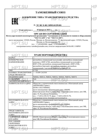 | Номер документа | ТС RU Е-RU.МР03.01259.И1 |