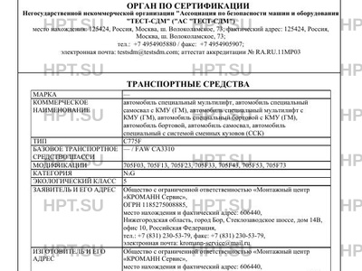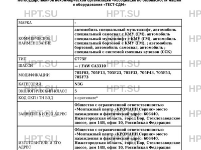 | Тип ТС | Транспортные средства изготавливаются на базе шасси модификаций: СА3310Р66K24T4E5 В случае фактического превышения транспортным средством весовых ограничений, установленных пунктами 2.1 и 2.2 приложения № 5 к техническому регламенту Таможенного союза «О безопасности колесных транспортных средств», для его передвижения по территории Евразийского экономического союза необходимо оформление специального разрешения. Транспортные средства не предназначены для перевозки пищевых продуктов и опасных грузов. Использована аббревиатура: КМУ - краноманипуляторная установка, ГМ - гидроманипулятор. |