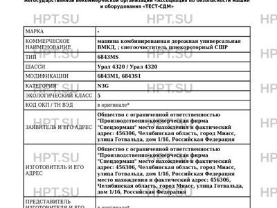 | Коммерческое наименование | машина комбинированная дорожная универсальная ВМКД; снегоочиститель шнекороторн… |
