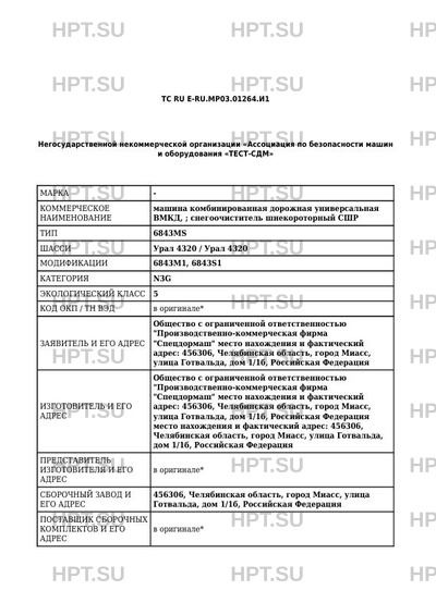 | Заявитель | Общество с ограниченной ответственностью "Производственно-коммерческая фирма "Спецдормаш" место нахождения и фактический адрес: 456306, Челябинская область, город Миасс, улица Готвальда, дом 1/1б, Российская Федерация |