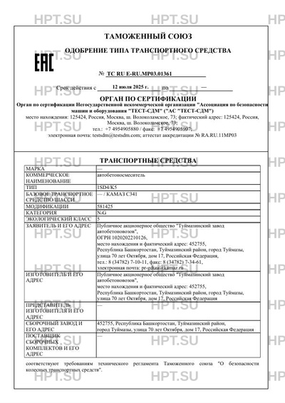 | Предприятие-изготовитель | Публичное акционерное общество "Туймазинский завод автобетоновозов", место нахождения и фактический адрес: 452755, Республика Башкортостан, Туймазинский район, город Туймазы, улица 70 лет Октября, дом 17, Российская Федерация |