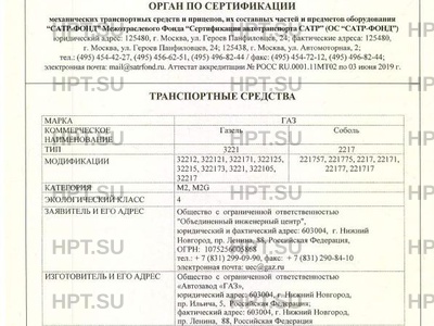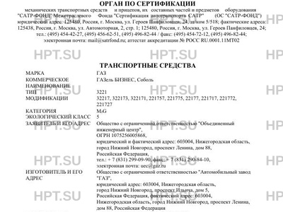 | Оборудование ТС | утеплитель облицовки радиатора; устройство вызова экстренных оперативных служб с ручным включением и автоматическим срабатыванием при опрокидывании; для мод. 322171: устройство ограничения максимальной скорости (функцию устройства ограничения максимальной скорости выполняет электронный блок управления двигателем); для мод. 221757, 221775: светосигнальная громкоговорящая установка; для автомобилей скорой медицинской помощи: светосигнальная громкоговорящая установка, противотуманные фары и медицинское оборудование по заказу: клееные стекла салона; детермальные стекла; сдвижная дверь с механическим приводом (электроприводом); cовмещенная система вентиляции, отопления и кондиционирования (система управления климатом) с ручным управлением; догреватель охлаждающей жидкости; предпусковой подогреватель; противотуманные фары; центральный замок передних дверей; наружные зеркала заднего вида с электроприводом, с электрообогревом; электрические стеклоподъемники; круизконтроль; панель приборов люкс; магнитола; АКБ повышенной емкости; блокировка дифференциала заднего моста; дневные ходовые огни; тахограф; для мод. 221757, 221775: вытяжка с электрическим управлением; для мод. 221757, 221775: дополнительный отопитель; для мод. 221757, 221775 дополнительное оборудование в соответствии с требованиями заказчика; для мод. 322171: специальный предупреждающий огонь желтого или оранжевого цвета (один или два) |