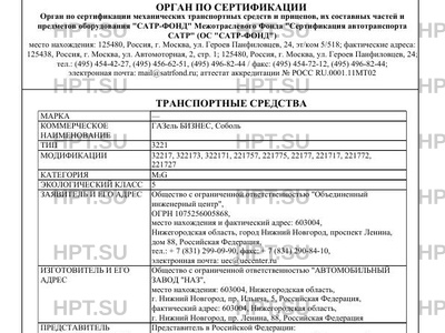 | Оборудование ТС | утеплитель облицовки радиатора; устройство вызова экстренных оперативных служб с ручным включением и автоматическим срабатыванием при опрокидывании; для мод. 322171: устройство ограничения максимальной скорости (функцию устройства ограничения максимальной скорости выполняет электронный блок управления двигателем); для мод. 221757, 221775: светосигнальная громкоговорящая установка; для автомобилей скорой медицинской помощи: светосигнальная громкоговорящая установка, противотуманные фары и медицинское оборудование по заказу: клееные стекла салона; детермальные стекла; сдвижная дверь с механическим приводом (электроприводом); cовмещенная система вентиляции, отопления и кондиционирования (система управления климатом) с ручным управлением; догреватель охлаждающей жидкости; предпусковой подогреватель; противотуманные фары; центральный замок передних дверей; наружные зеркала заднего вида с электроприводом, с электрообогревом; электрические стеклоподъемники; круизконтроль; панель приборов люкс; магнитола; АКБ повышенной емкости; блокировка дифференциала заднего моста; дневные ходовые огни; тахограф; для мод. 221757, 221775: вытяжка с электрическим управлением; для мод. 221757, 221775: дополнительный отопитель; для мод. 221757, 221775 в соответствии с требованиями заказчика; для мод. 322171: специальный предупреждающий огонь желтого или оранжевого цвета (один или два) |