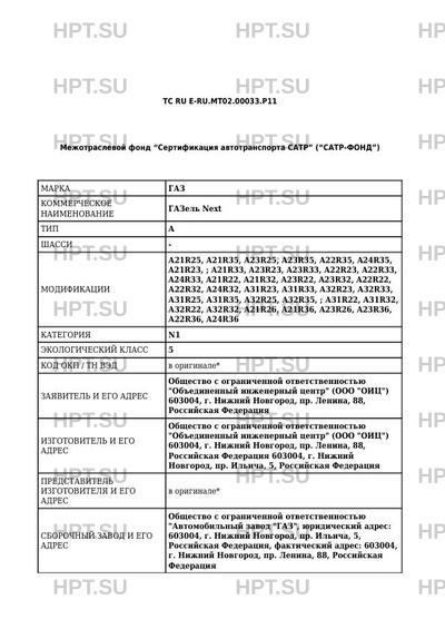 | Номер документа | ТС RU Е-RU.МТ02.00033.Р11 |