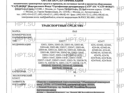 | Тип ТС | Модификации 32053, 320530-02, 32053-04, 32053-110-07, 32053-110-57, 32053-110-6… |