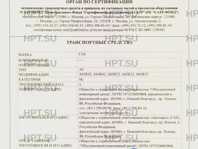 | Предприятие-изготовитель | Общество с ограниченной ответственностью "Автомобильный завод "ГАЗ", юридический адрес: 603004, Нижегородская область, город Нижний Новгород, проспект Ильича, дом 5, Российская Федерация, фактический адрес: 603004, Нижегородская область, город Нижний Новгород, проспект Ленина, дом 88, Российская Федерация |