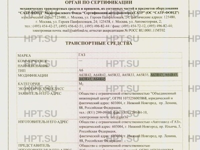 | Предприятие-изготовитель | Общество с ограниченной ответственностью "Автозавод "ГАЗ", юридический адрес: 603004, г. Нижний Новгород, пр. Ильича, 5, Российская Федерация, фактический адрес: 603004, г. Нижний Новгород, пр. Ленина, 88, Российская Федерация |