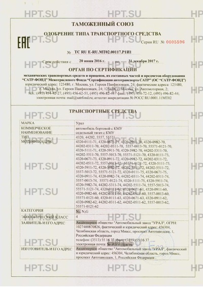 | Предприятие-изготовитель | Акционерное общество "Автомобильный завод "УРАЛ". 456304, Челябинская область, город Миасс, проспект Автозаводцев, дом 1, Российская Федерация. |