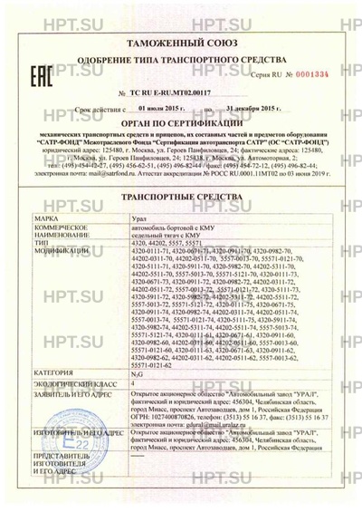 Предприятие-изготовитель Открытое акционерное общество Автомобильный завод УРАЛ , фактический и юридический адрес: 456304, Челябинская область, город Миасс, проспект Автозаводцев, дом 1, Российская Федерация