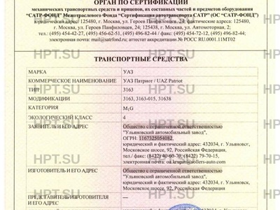 | Коммерческое наименование | УАЗ Патриот / UAZ Patriot |