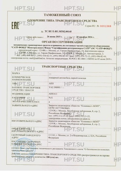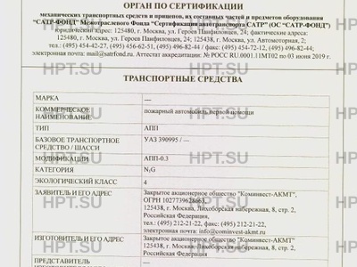 | Коммерческое наименование | пожарный автомобиль первой помощи |