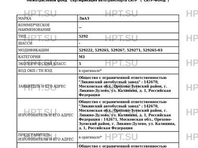 | Заявитель | Общество с ограниченной ответственностью "Ликинский автобусный завод". : 142670, Московская обл., Орехово-Зуевский район, г. Ликино-Дулево, ул. Калинина, д. 1, Российская Федерация. ОГРН: 1045007006274. Тел. .: (496) 414-60-15, 414-60-16. Факс (496) 414-59-20. Email SecrLIAZ@gaz.ru. |
