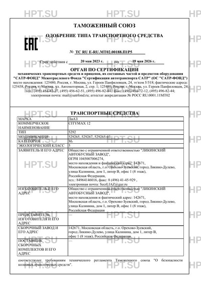 | Номер документа | ТС RU Е-RU.МТ02.00188.П1Р5 |