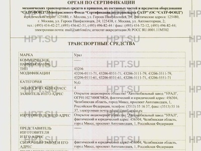 | Предприятие-изготовитель | Открытое акционерное общество Автомобильный завод УРАЛ , фактический и юридический адрес: 456304, Челябинская область, город Миасс, проспект Автозаводцев, дом 1, Российская Федерация ОГРН: 1027400870826, телефон: (3513) 55 16 37, факс: (3513) 55 16 37 электронная почта: gdural@mail.uralaz.ru |